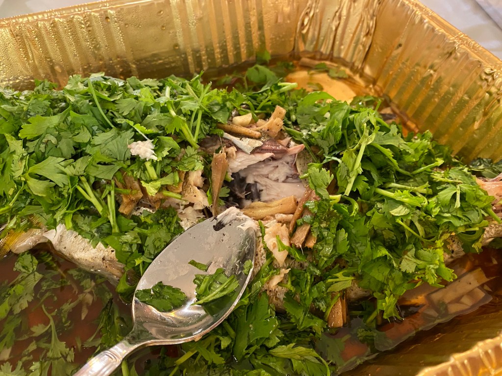 Season fish with salt/pepper, cut slats in the fish and shove some garlic and ginger, then steam for 15-20 minutes, check to make sure fish is cooked through. Heat peanut oil in pan til sizzling, throw in garlic and ginger then pour sizzling oil over fish. Add shoyu, garnish with green onion or cilantro. Serve immediately.
